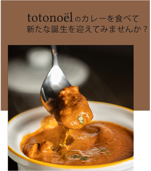 totonoёlのカレーは7種類の厳選したスパイスの効果でアンチエイジングが期待でき、体内をリセットし、いつまでも若く元気でいて欲しいという願いが込められています。 「自分と家族の両方が幸せになれるもの」それがtotonoёlの目指す未来です。
